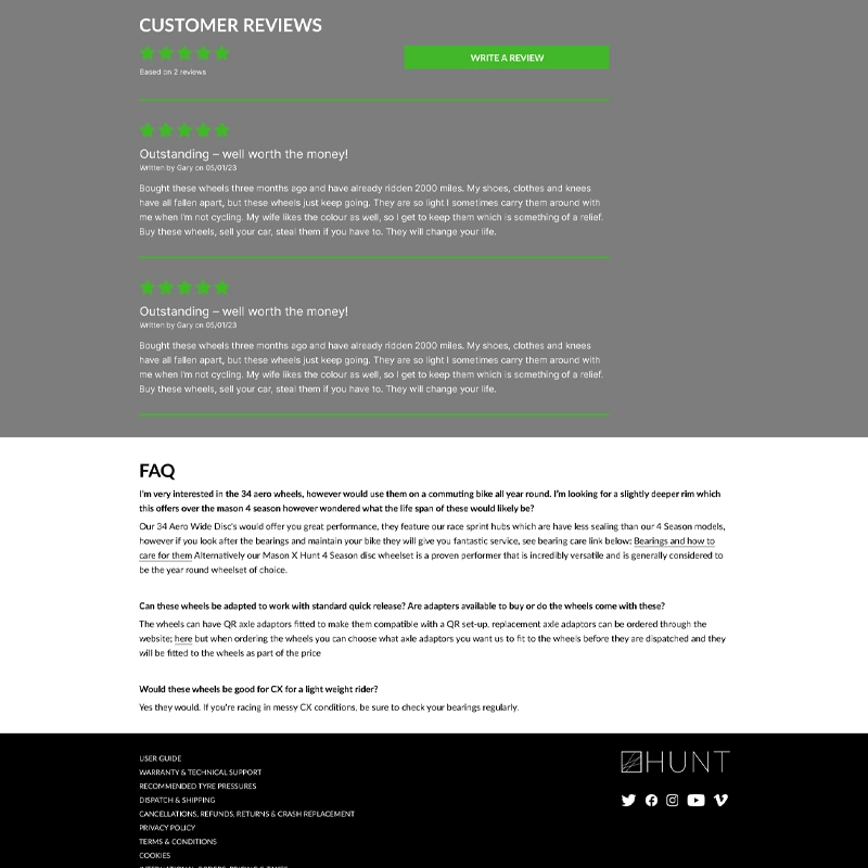 I was approached for a quick project looking at a single product page for a bicycle wheel manufacturer.